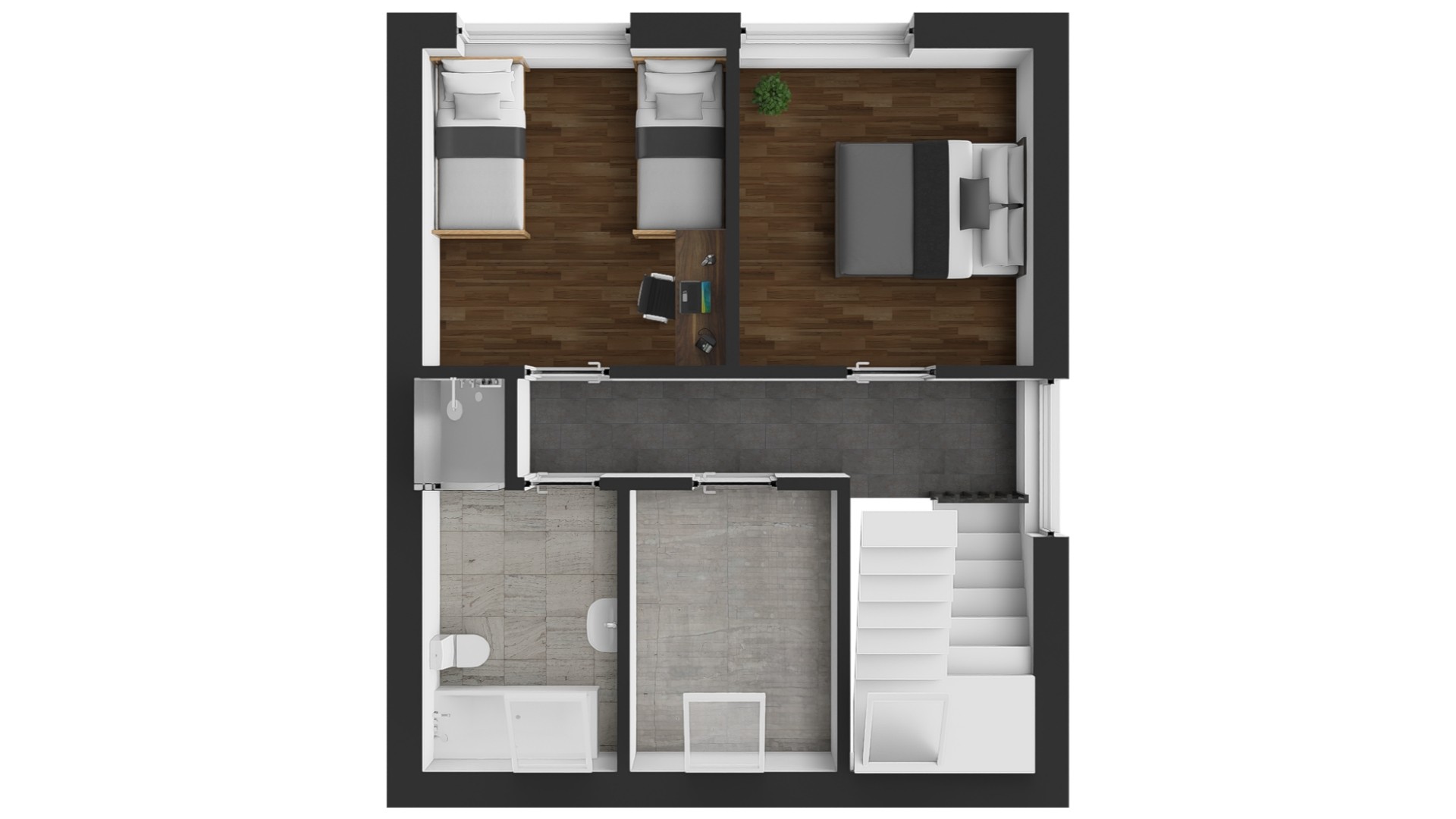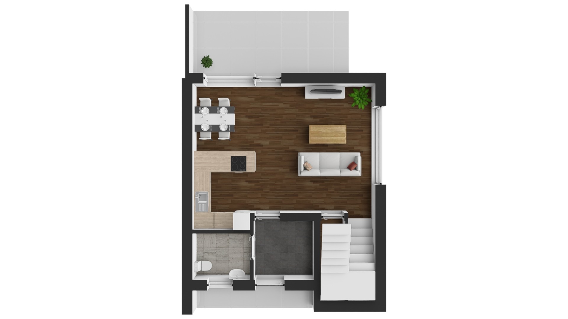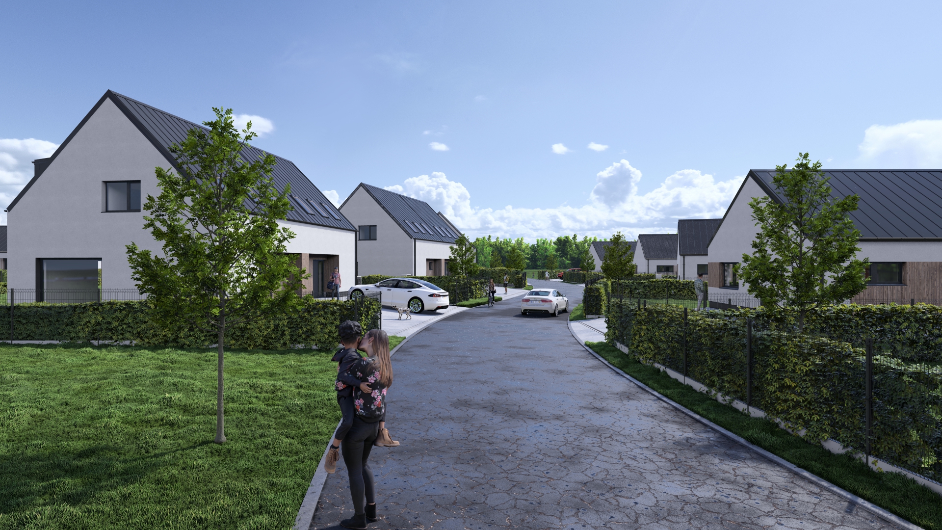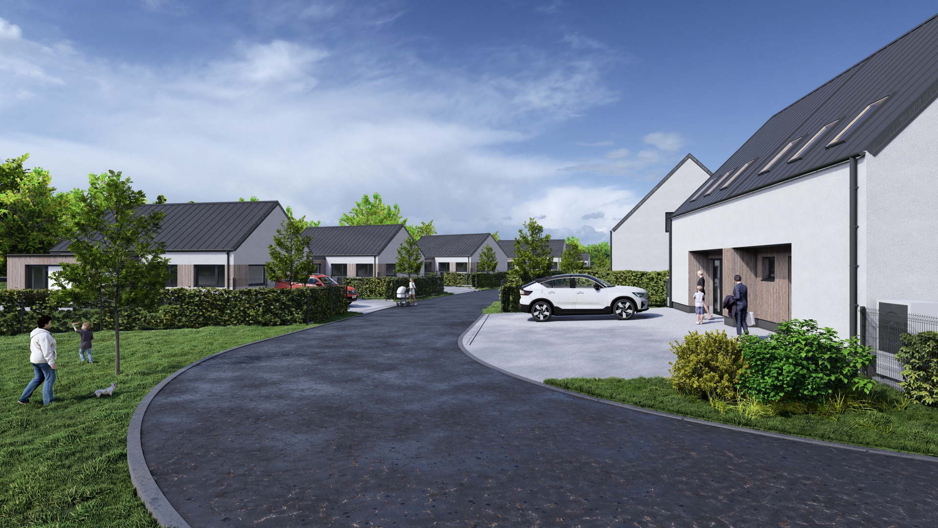 Každá bytová jednotka má vlastní soukromou terasu a zahrádku, které poskytují ideální prostor pro relaxaci, grilování, hry s dětmi nebo pěstování rostlin. Před domem je k dispozici vlastní parkovací stání pro dvě vozidla.